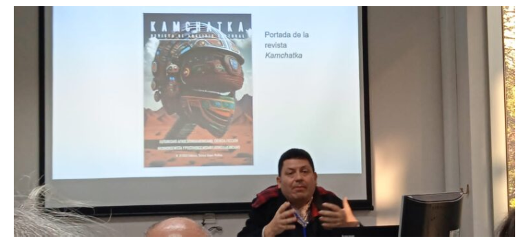 En su presentación, el docente abordó el impacto de su publicación «La alegría centrífuga. Máquinas y corporalidades poshumanas en El zorro de arriba y el zorro de abajo, de José María Arguedas» (2012) y exploró la conexión entre el mundo representado por Arguedas en dicha novela y el debate planteado en la revista Kamchatka (2023) sobre la ciencia ficción neoindigenista y la post-indigenista.