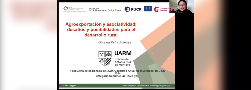 La politóloga presentó su resumen de tesis “Agroexportación y asociatividad: desafíos y posibilidades para el desarrollo rural”, el cual compitió con otras doce propuestas a nivel nacional, siendo evaluado por un jurado de expertos de prestigiosas instituciones como Indiana University, Universite de Paris X, University of California y de la Pontificia Universidad Católica del Perú.