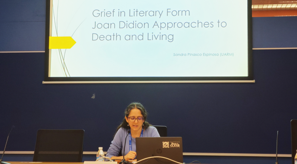 Por otro lado, la profesora Pinasco también participó en la 47th Conference de la Asociación Española de Estudios Anglo-Norteamericanos (AEDEAN), de la cual es miembro. Este evento académico se llevó a cabo en la Universidad Pablo de Olavide, en Sevilla, donde presentó la ponencia titulada “Grief in Literary Form. Joan Didion Approaches to Death and Living”, producto de los avances de su investigación doctoral en Lenguas Modernas: investigación en lingüística, cultura y traducción, que cursa actualmente en la Universidad de Alcalá.