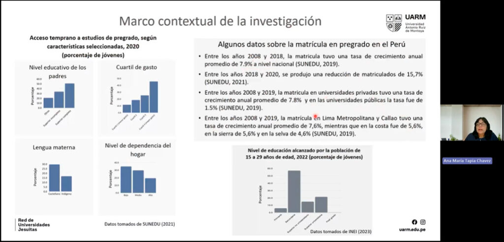 A la luz de los hallazgos de su investigación, la profesora Ana María Tapia hizo hincapié en la relevancia de conocer las percepciones de los estudiantes sobre sus experiencias en el primer año de vida universitaria desde diversas dimensiones, ya que ello permite identificar los posibles puntos críticos que podrían afectar sus trayectorias académicas. Esta información, desde la perspectiva de la excelencia inclusiva, es fundamental para que las instituciones universitarias estén en condiciones de brindar una atención oportuna y pertinente, más aún en un contexto de alta diversidad geográfica, cultural y social estudiantil.